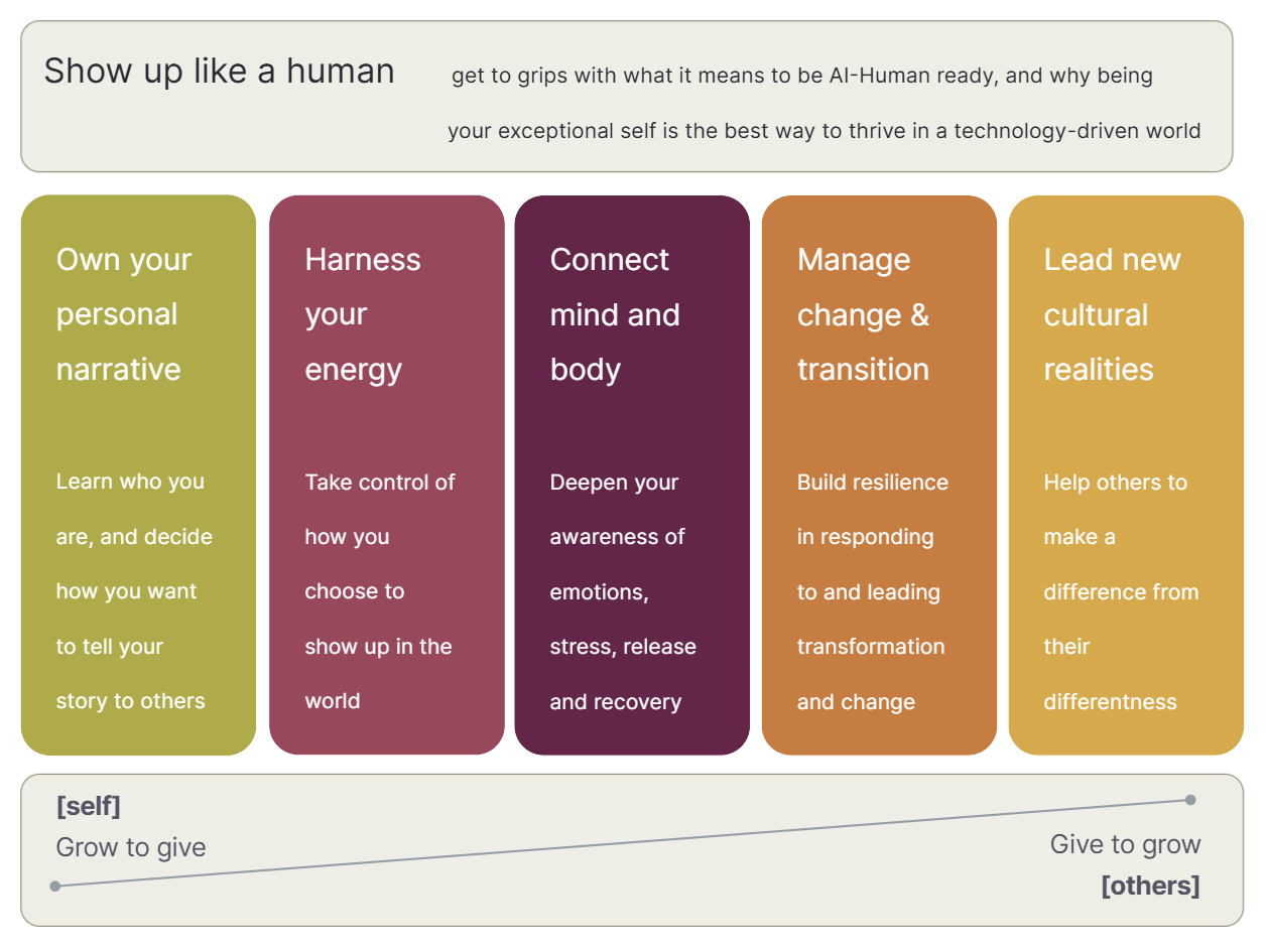 - Prepare leaders to show up as exceptionally human in technology-led environments