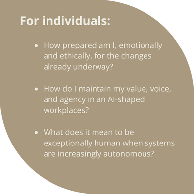 AI is already shaping how work is designed, how decisions are made and how opportunity is distributed. But while technology accelerates, our collective readiness – emotionally, ethically and practically – lags behind.